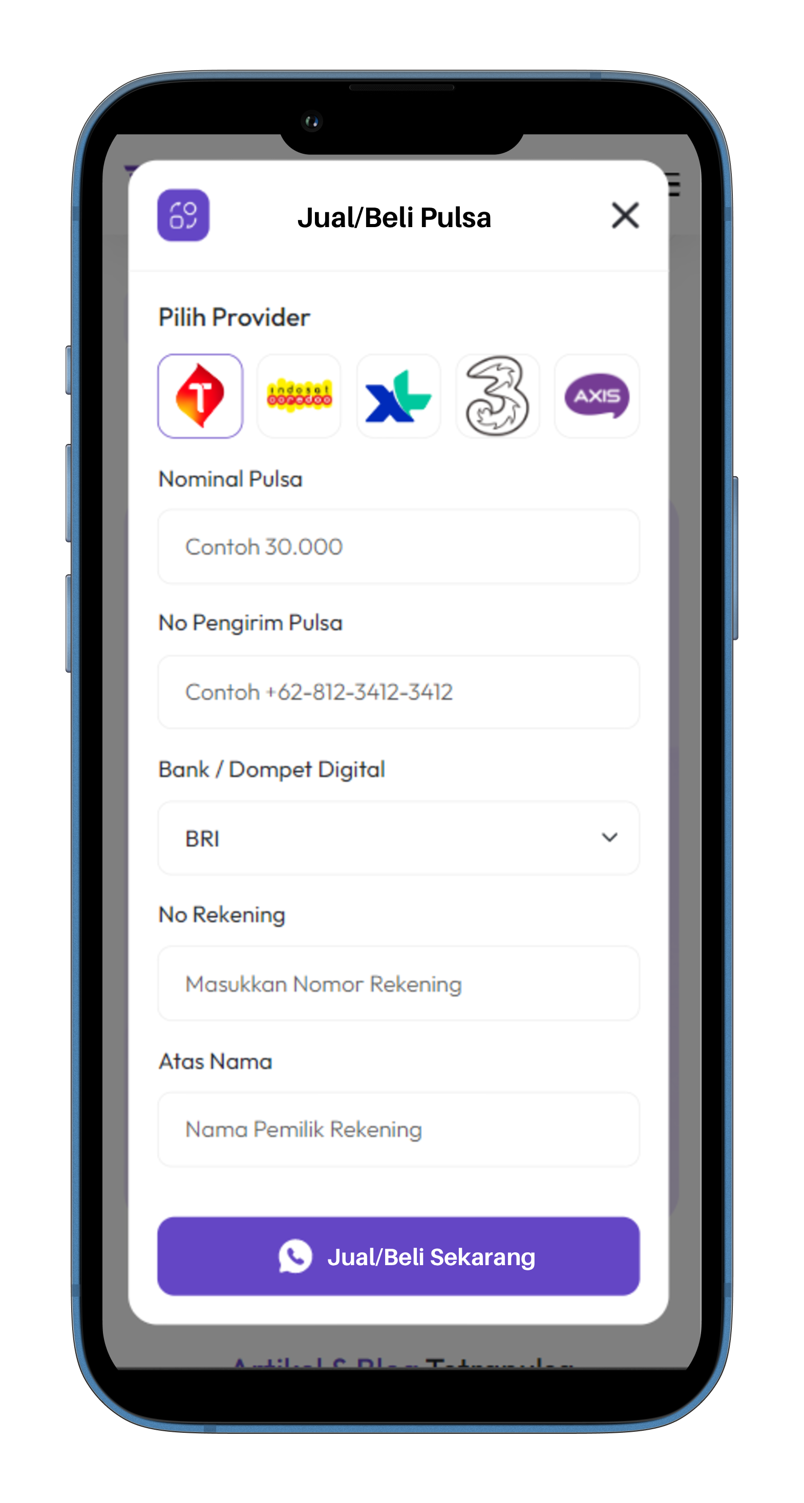 Isi Form di aplikasi ataupun di samping dengan data yang telah diminta, Setelah semua terisi click Jual/Beli sekarang atau lanjutkan
